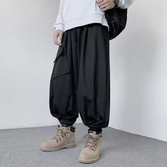 日系工裝闊腿燈籠束腳復古褲裝