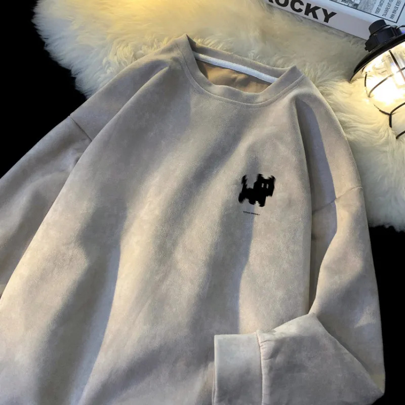 麂皮絨印花美式復古貓咪印花長袖衛衣